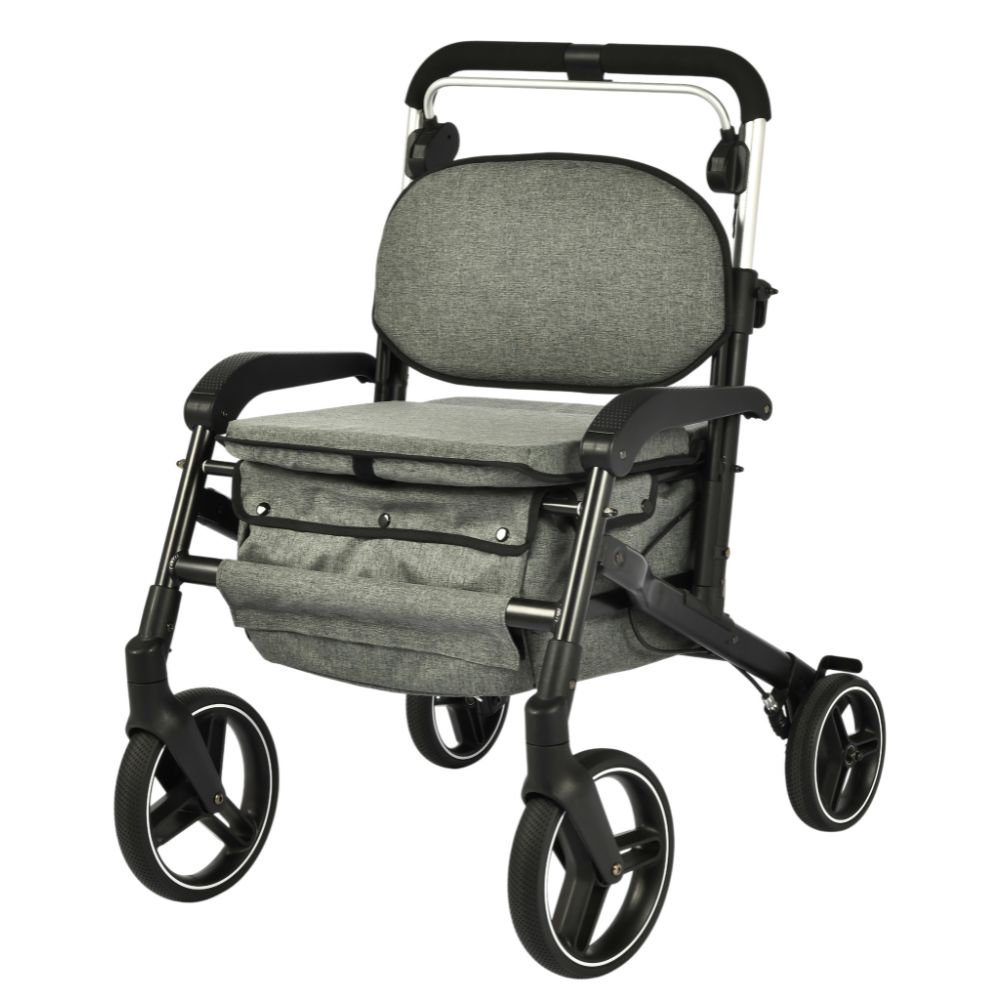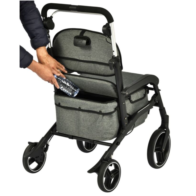Este modelo de rollator aporta la confianza que necesita su usuario para ser independiente y llevar un estilo de vida activo. Es perfecto para pasear y además, llevar consigo lo que necesite, dotándole también de la oportunidad de poder hacer la compra, gracias a su cesta de gran capacidad de debajo del asiento.