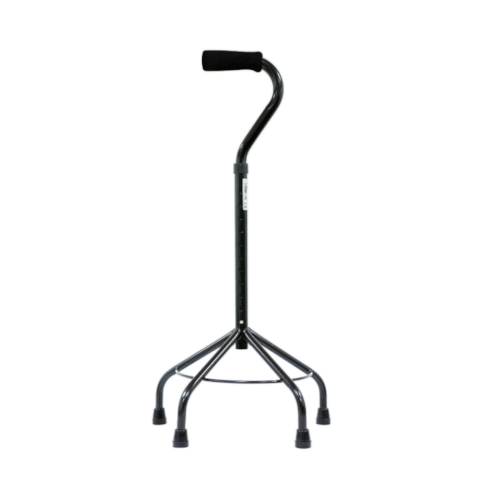 El cuadrípode es una ayuda técnica para la movilidad. Sirve para facilitar la marcha, aumentando la estabilidad, y disminuir el cansancio o carga al caminar sobre las extremidades inferiores, ya que permite descargar el peso de la pierna afectada.