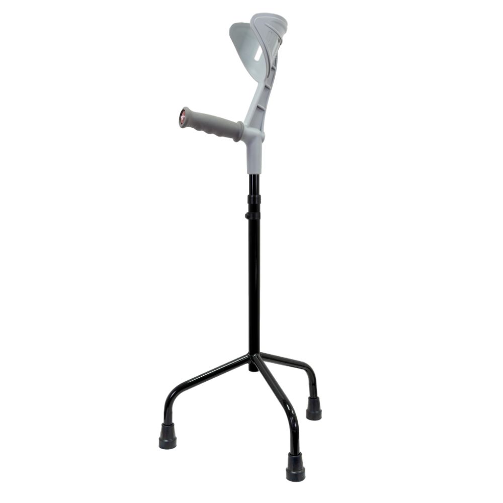 - Usar un trípode de la medida adecuada es imperativo. Un trípode regulado a la medida correcta invita a que la persona que lo utiliza mantenga una postura erguida con el codo ligeramente doblado unos 20º o 30º. El peso se apoya de forma natural en el trípode cuando la persona camina.