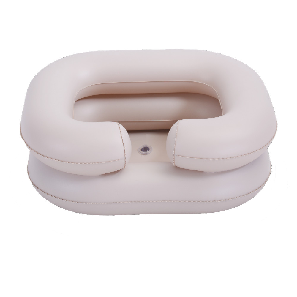 Este lavacabezas hinchable rectangular es una ayuda para las personas que permanecen en la cama y no tienen la posibilidad de levantarse para realizar la higiene de su cabello.