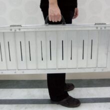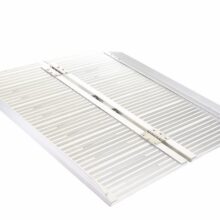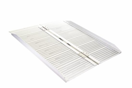 Esta rampa plegable portátil es una solución fácil para sillas de ruedas. Es una rampa ligera de una sola pieza que se asegura con bisagras en el centro. Se dobla por la mitad para facilitar su almacenamiento y transporte.