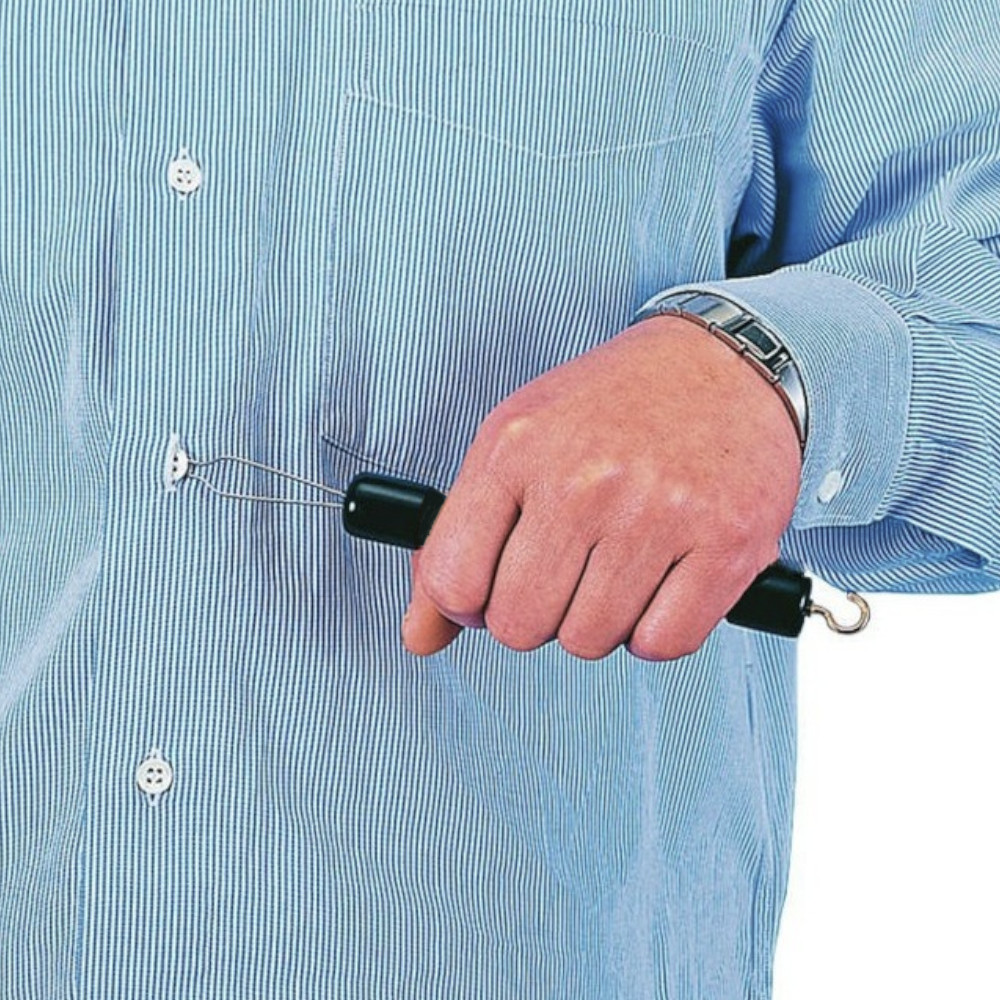 Este pequeño aparato ayuda en las tareas de abrocharse los botones y subirse la cremallera.