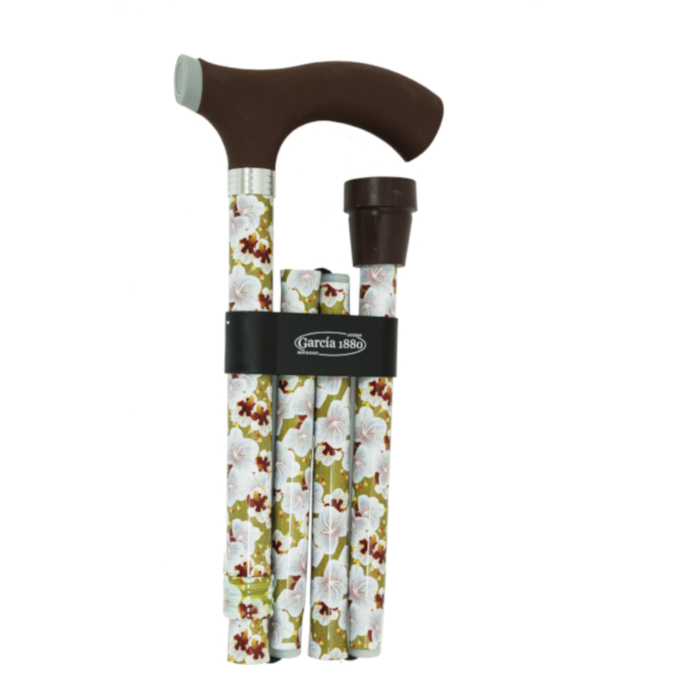 Muletilla plegable con estampado de flores verde y puño de tacto suave
