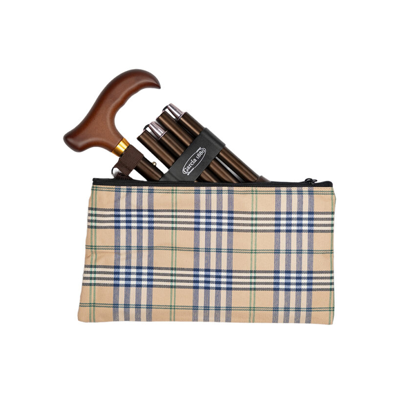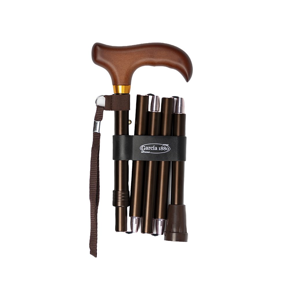 Muletilla mini plegable en aluminio, puño y tubo marrón