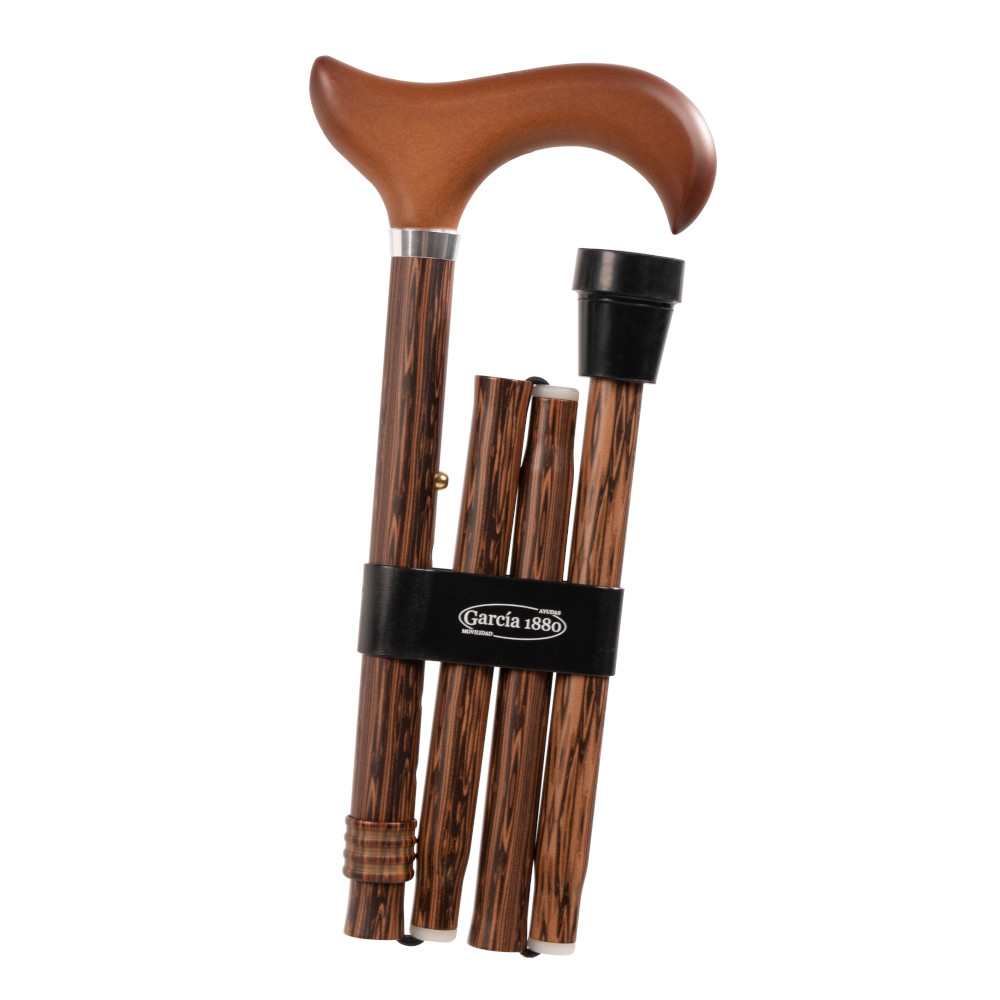 Esta muletilla plegable está fabricada en aluminio. El tubo es con estampadi imitación madera. Sus características principales son las siguientes: