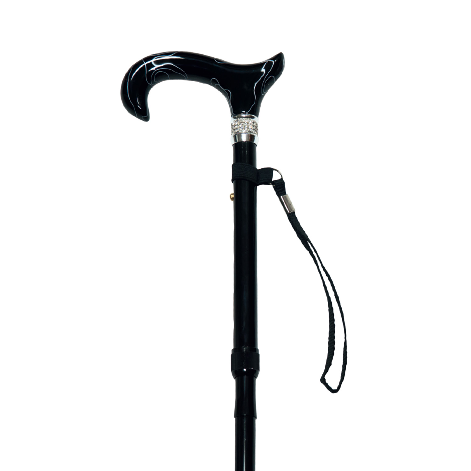 Muletilla plegable en aluminio negra con anilla de cristal de strass