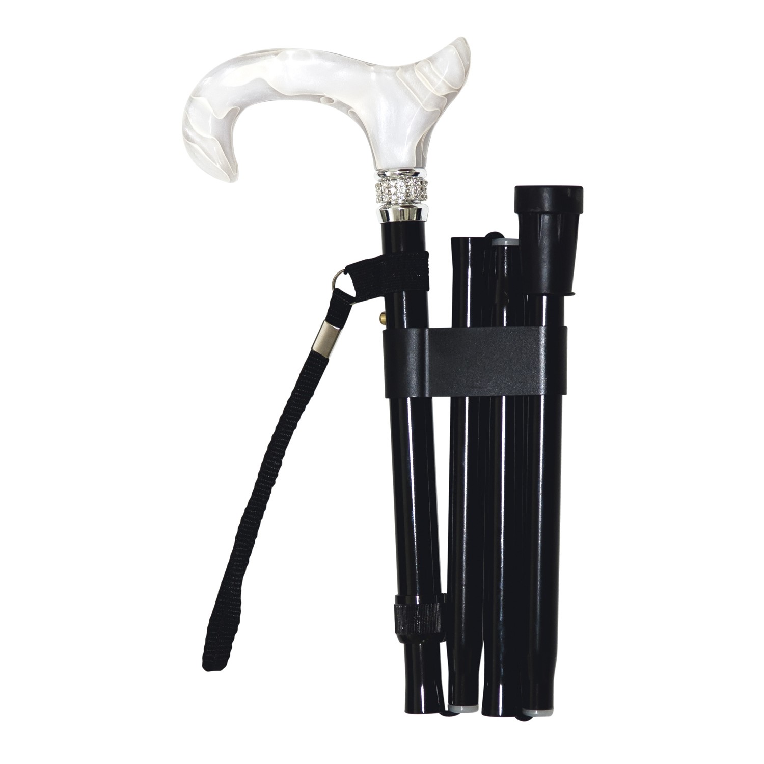 Muletilla plegable en aluminio puño blanco con anilla de cristal de strass