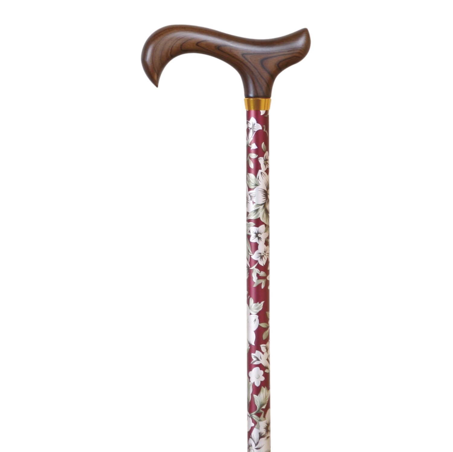 Esta muletilla extensible está fabricada en aluminio. El tubo es de color rojo con estampado de flores blancas y la empuñadura es de madera. Sus características principales son las siguientes: