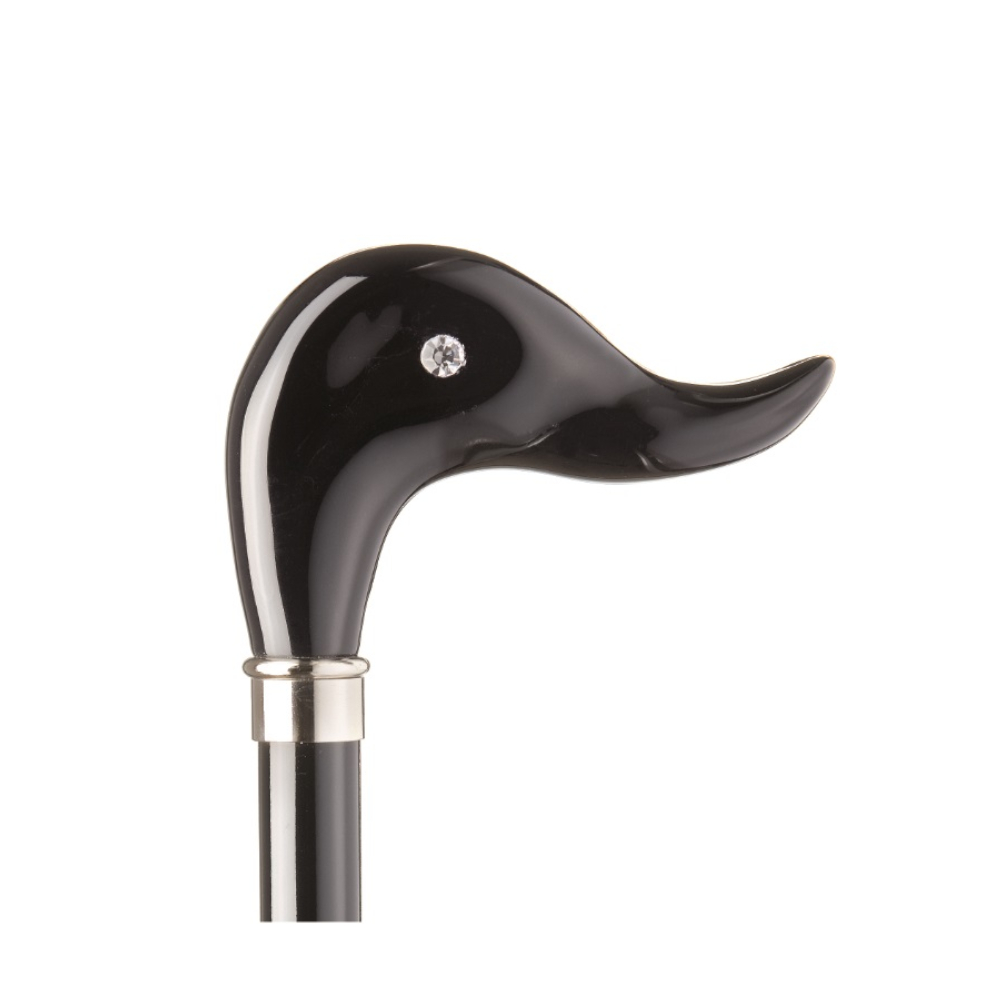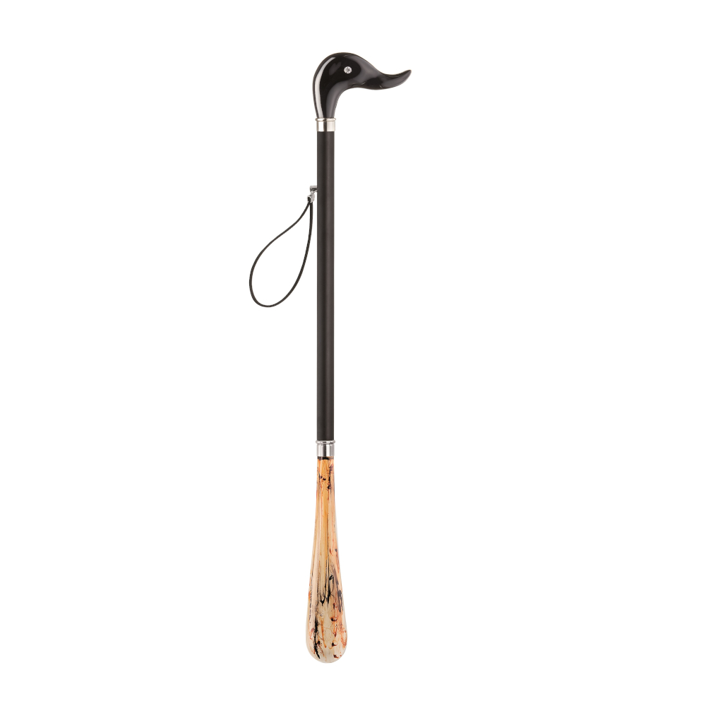 El puño en forma pato y la pala fabricada en acetato de celulosa en acabado negro con brillo.