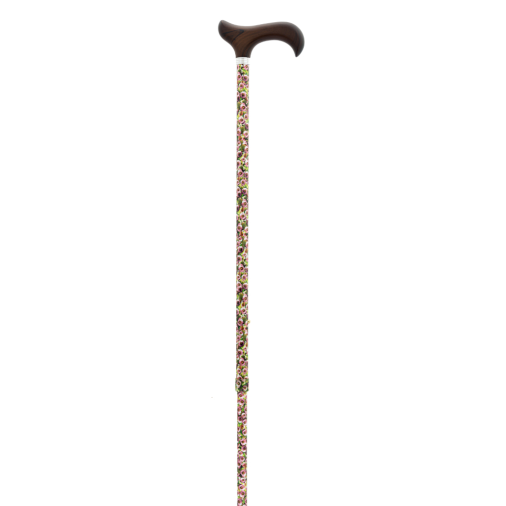 Muletilla extensible con estampado de flores pequeñas y puño de madera