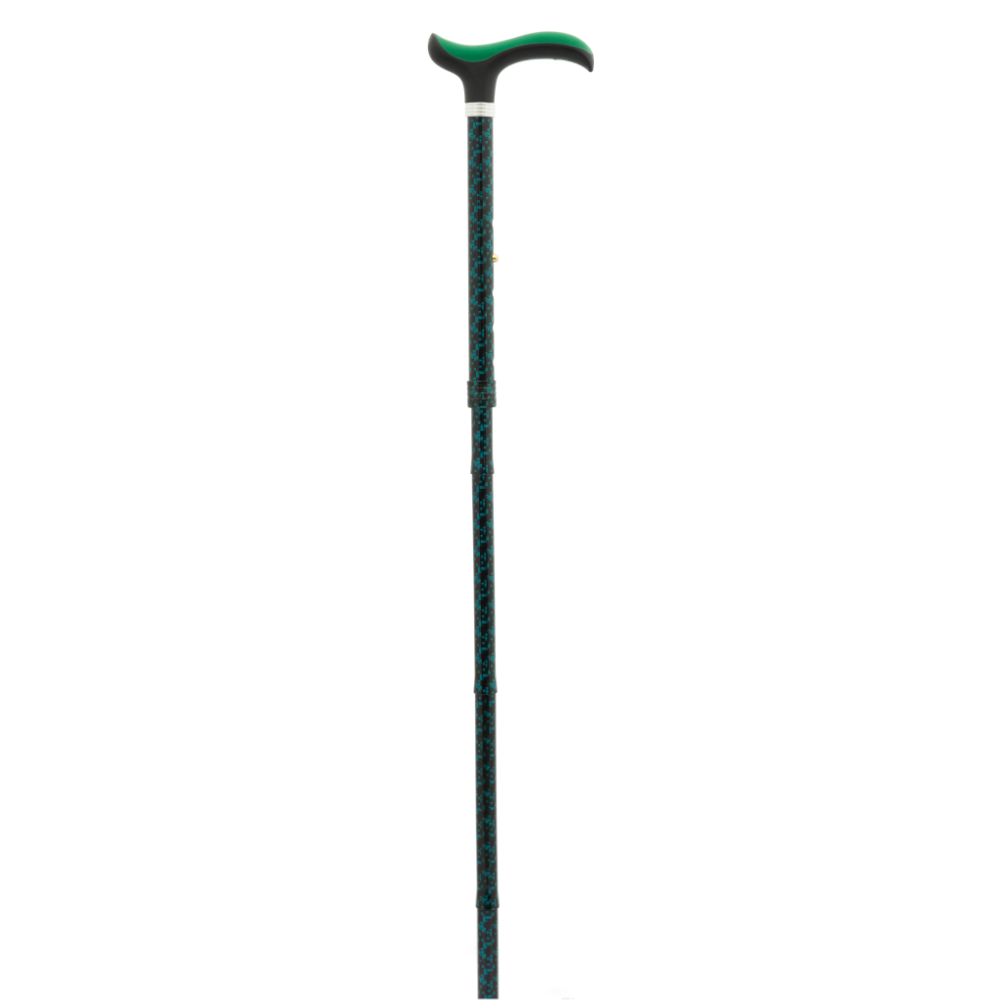 Muletilla plegable slim de aluminio. El tubo es estampado verde y el puño es de tacto suave negro y verde.