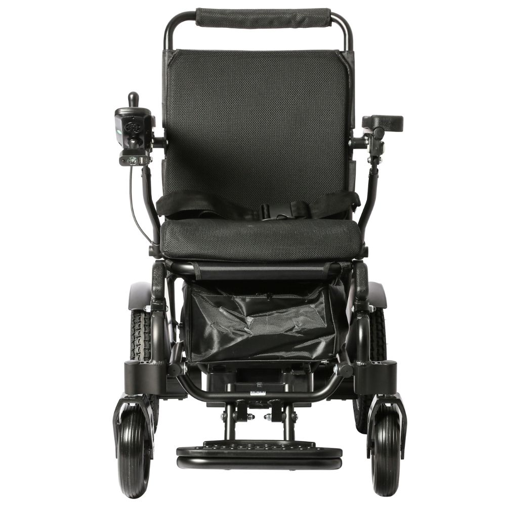 Es una silla de ruedas eléctrica ultra ligera pero con gran potencia e insonora. Su chasis es de aluminio color negro mate, la batería de litio de 20Ah y usa motores sin escobillas.
