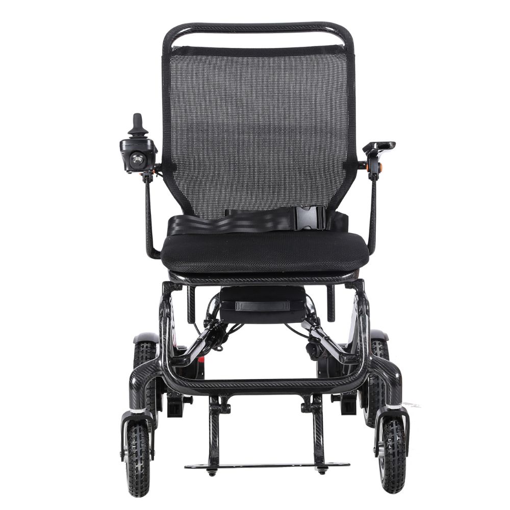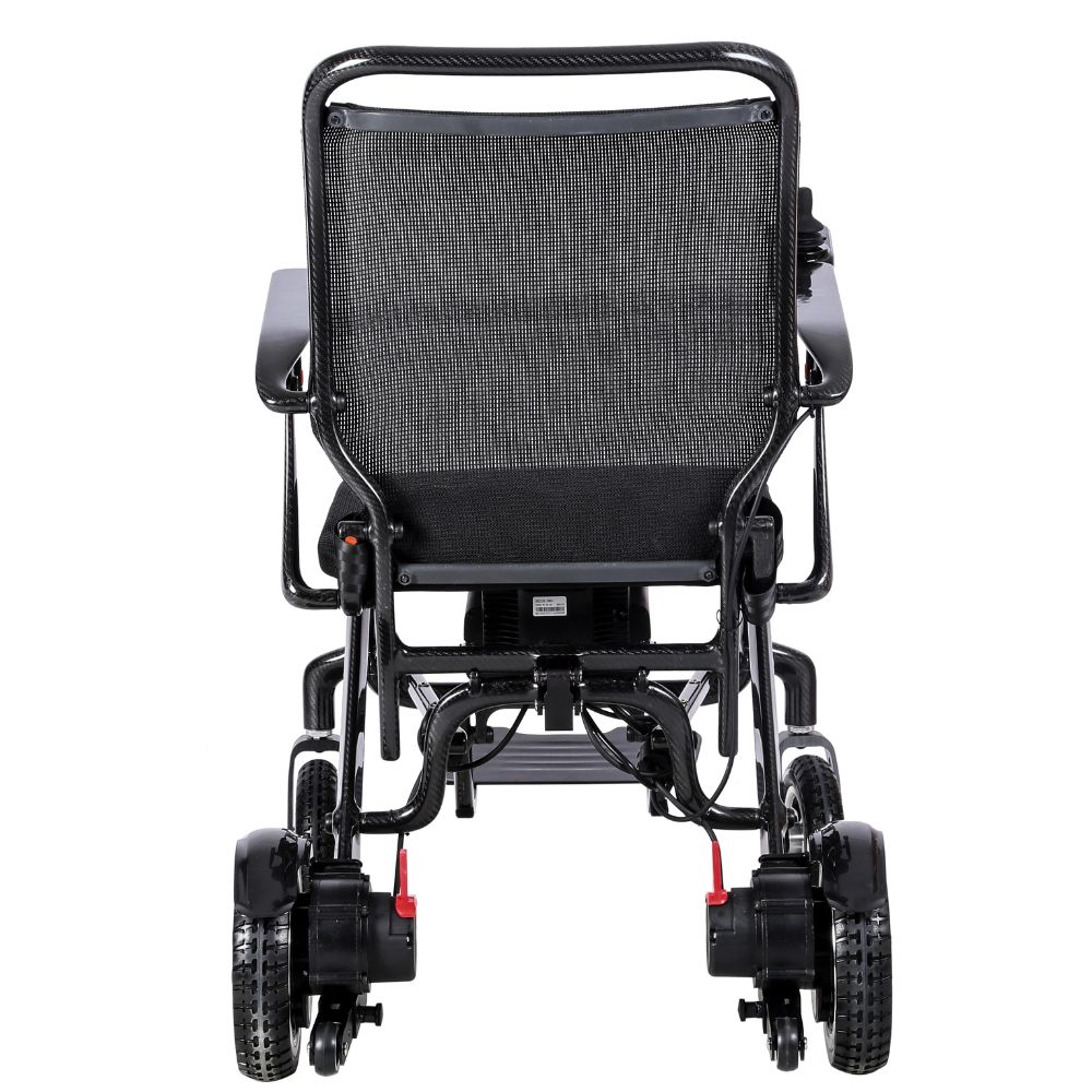 Los 19,40 Kg de peso (con batería incluida) de esta silla hacen que sea una de las sillas eléctricas de fibra de carbono más ligeras pero resitentes del mercado.